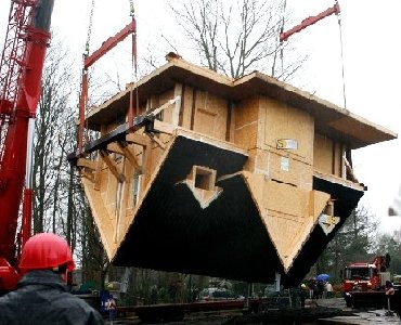 這座高23呎,構思瘋狂的房子(上下顛倒房子),其實是德國蓋托夫(Gettorf)地區動物園推出的新點子,最初由漢堡的投資者狄克奧斯特構思出來。當地的慕德豪斯等三位工匠合力打造完成。