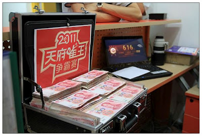 四川成都前日舉辦總獎金高達八十萬元(人民幣‧下同)的「2012天府雀王爭霸賽」,一百三十二名參賽者經過五小時的竹戰決 賽後,前日最終由兩名來自邛崍市和三台縣的女士成為「天府雀王」及遺材賽「巴適雀王」,分別獲得廿萬元和五萬元獎金。主辦單位表示,舉辦比賽 只為推廣麻雀 這個中國民間的傳統文化,並非鼓吹賭博。