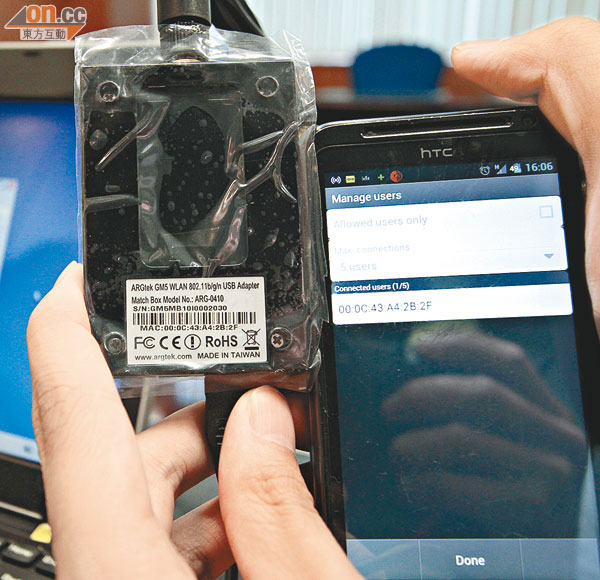 巿民使用WiFi上網愈來愈普及,近日市面出現一款聲稱可破解各種制式密碼的WiFi破解器;本報委託專家測試WiFi 破解器,發現該WiFi破解器透過不斷組合密碼,確可將密碼破解。黑客更可藉WiFi破解器入侵電 腦,盜取個人資料,並透過機主的WiFi,上網做不法行為。