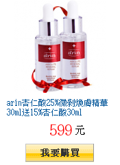 - arin 杏仁酸25%微剝煥膚精華30ml送15%杏仁酸30ml