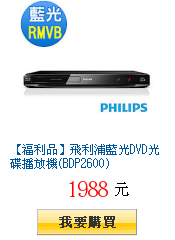 【福利 品】飛利浦藍光DVD光碟播放機(BDP2600)