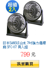 日本 SANSUI山水 7吋強力循環扇 SFC-07 兩入組