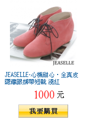 JEASELLE-心機甜心‧全真皮隱藏跟綁帶短靴 淺紅