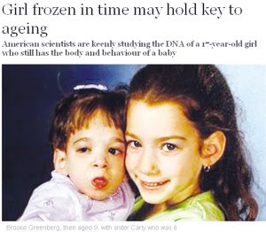 國醫學專家對布魯克(17歲嬰兒 布魯克)進行了一系列診治,發現她身上存在許多『矛盾現象』──她身體每個部分的衰老程度並不一樣!比如17